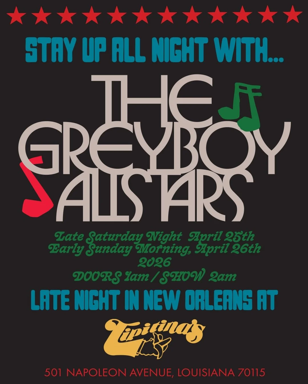 Annual late night gig at Tipitina’s. On Sale Now!